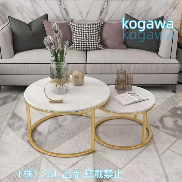 大理石テーブルネストテーブルセット2個セット家具ラウンドティーカクテルテーブル、MDFデスク積み重ね可能るグルームのセットS&Lリビングルームまたはラウ