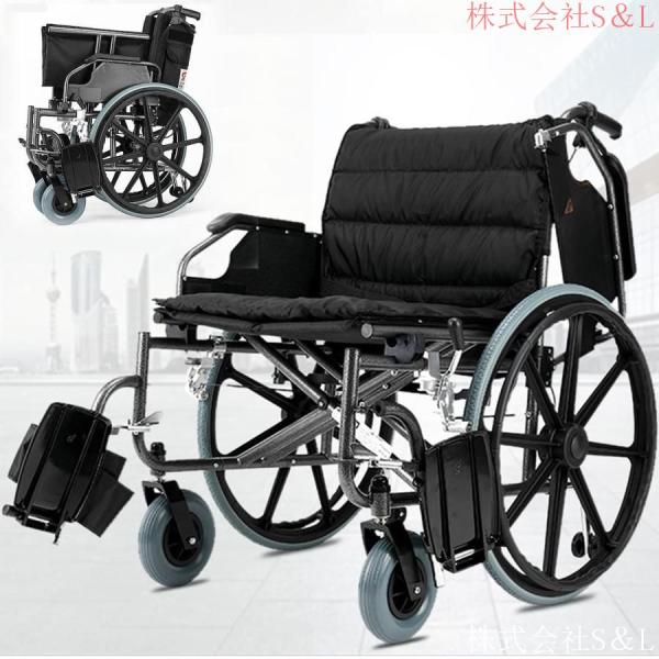 頑丈なエクストラワイド車椅子、22インチのシート幅、快適な折りたたみ、軽量、拡大および拡大された高齢者車椅子、株式会社S&L 耐荷重150KG A