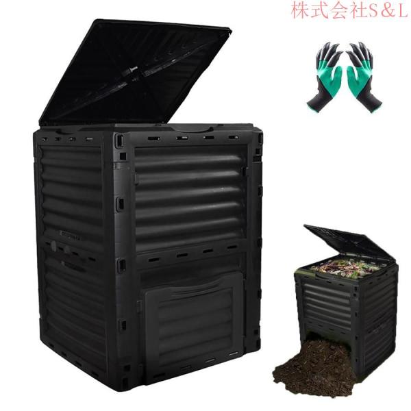 300L屋外コンポストバレル、大容量 生ごみコンポストバレル 草の食品ゴミのリサイクル 株式会社S&L家庭用リサイクル発酵堆肥ボックス、ふた付き