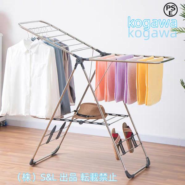 折りたたみ室内物干しステンレス製物干しスタンドバタフライコンパクトおしゃれ洗濯物干し多機能タオル掛け物干し竿S&L簡単設置高さ調整可能X型部屋