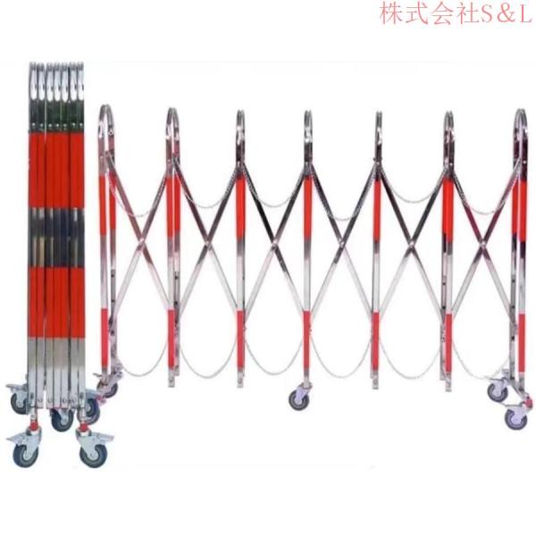 伸縮自在のバリケード、 ステンレス製アーチ型開閉式フェンス 屋外用金属製伸縮式フェンス 株式会社S&L移動が容易な折りたたみ式スタンションシステム