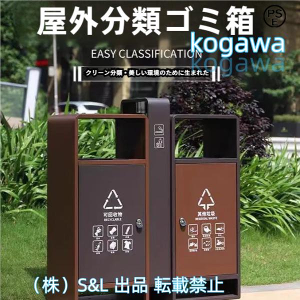 おしゃれ屋外ゴミ箱茶色灰色高さ98cm幅88cm奥行き33cm2分類ゴミ箱、金属防錆ごみ箱S&L大容量ダストボックス公園町住宅ホテル商業用ゴミ箱、多機能