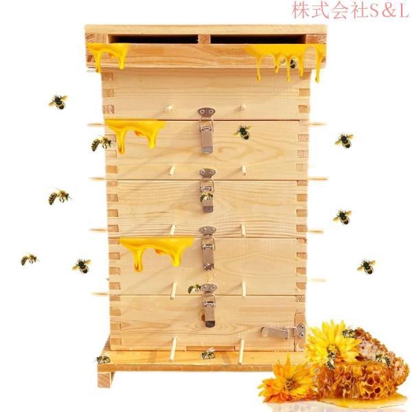 ミツバチ 巣箱 5階 蜜蜂巣箱 杉材 焼彩仕上 ワックスを煮る 5階の格子箱 防水株式会社S&L 防湿 防虫 簡単インストール 養蜂箱キット