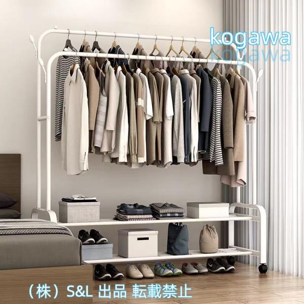 長期的な強度のための頑丈な鋼鉄の頑丈な衣服ラック。両方の服吊り下げ棒は最大120ポンドを保持できます。底の棚は33ポンドに耐えることができます。