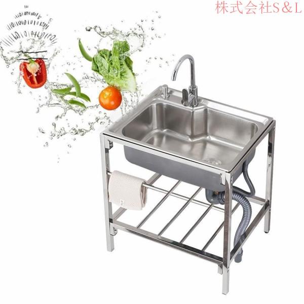 流し台簡易式厚いステンレスガーデンシンク屋外簡易業務用外キッチンシンク単槽シンクS&L自立型キッチンゴミ受けガーデン水回り野菜洗い庭農園