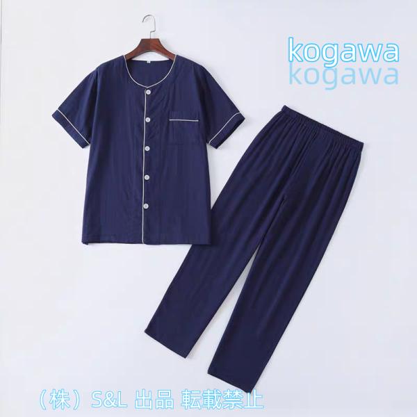 パジャマ メンズ 半袖 長ズボン 襟なし メンズルームウェアパンツ 株式会社S&L メンズルームウェア上下夏物 パジャマ セットアップ 前開き 綿素材