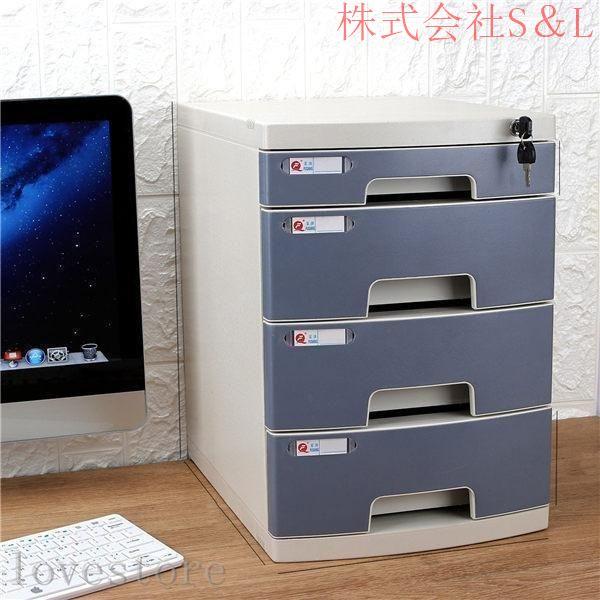 オフィス収納ボックス 鍵付き 引き出し式 4層 デスク収納株式会社S&L 机上収納 書類入れ ファイル/雑誌/新聞/cd/辞書/書類入り A4対応