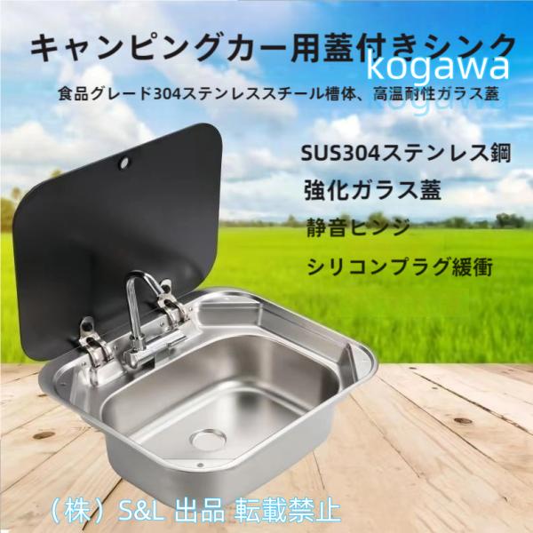 RV キャンピングカー シンク 小型 キッチン ステンレス シンク 冷温切替 折りたたみ式隠水栓 株式会社S&L強化ガラス蓋付き RV旅行トレーラー ガーイレ