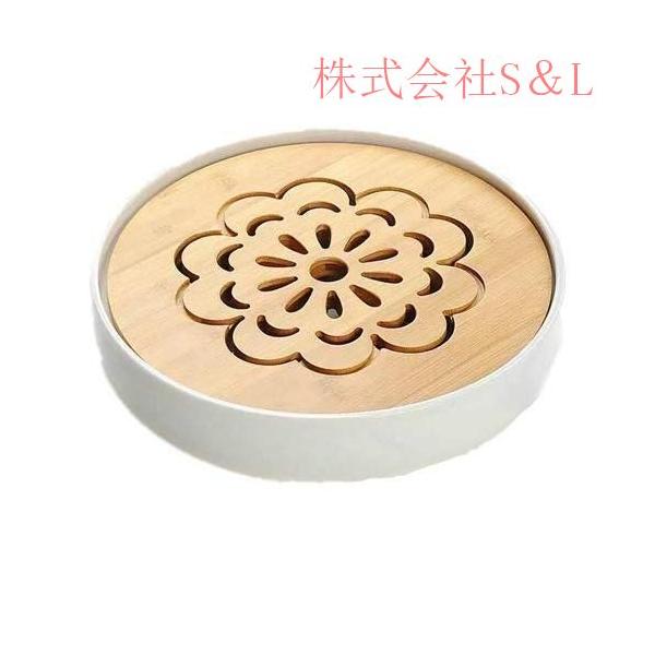 茶トレイ排水茶盤セラミックティートレイ茶盤茶道具茶器セットティートレイトレイ貯水式茶盤ラウンドティーテーブル和風S&L多種選べる(桃の花25*25
