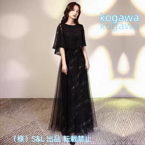 ロングドレス 黒 袖付き ワンショルダー ドレス ロング丈 ミモレ丈 大人 演奏会 ピアノ 発表会 母親S&L結婚式 韓国風 ロング 大きいサイズ 4L 体型カバー