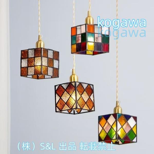1灯 LED対応 インテリア照明 リビング ペンダントライト 和室 四角 おしゃれ 北欧 天井照明器具 ガラス 株式会社S&L和風 寝室 ダイニング ステンドグラス