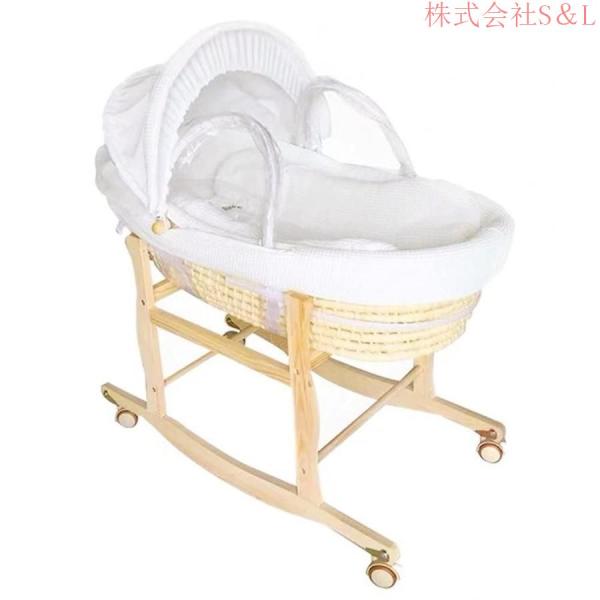 ベビーバスケット ベビー用クーファン ゆりかご 敷きふとん付き 木製クーハンスタンド付き 株式会社S&L ナチュラル 赤ちゃん 退院
