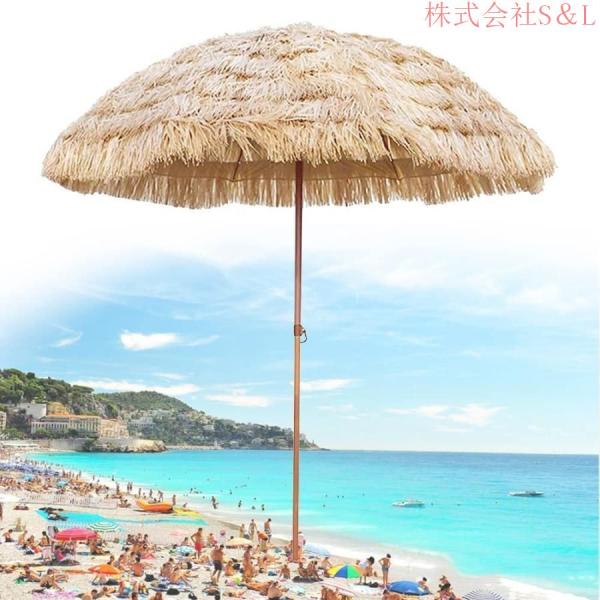 145cm ハワイビーチわらパラソル 高さ調整ロピカル ストロー 傘 携帯用ラウンドガーデンパラソル株式会社S&L 紫外線保護ガ ベースなし