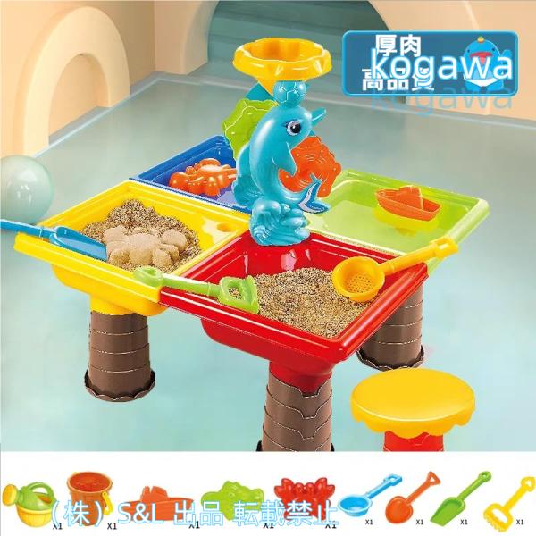 スクエアキッズサンドアンドウォーターアクティビティプレイテーブルふたおよびアクセサリ付き23個入りビーチサンドおもちゃセットS&Lゲームテーブルデスクグ