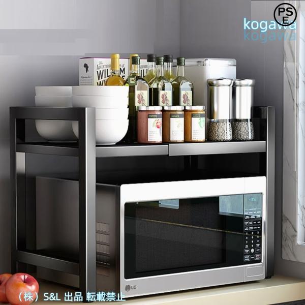 レンジ上ラック伸縮式電子レンジラック、2段式高さ調整可能オーブンレンジラック、キッチン収納ラック、金属製電子レンジラック、耐熱S&L防蝕防錆組み立て簡