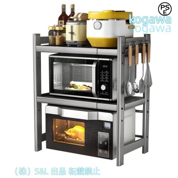 オーブンレンジラック キッチン収納ラック、ガンメタルグレー レンジ上ラック電子レンジラックレンジ台S&Lダブルレイヤーステンレス鋼の電子レンジのオーブンラ