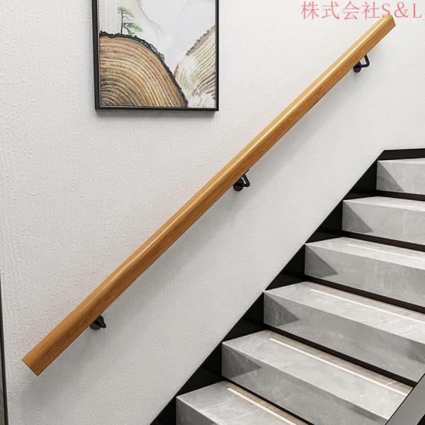 階段用手摺り屋内屋外兼用型階段てすり滑り止め安全,階段の手すりレールブラケット付きノンスリップ木製手すりS&L屋内階段用階段の手すり、壁に取り付け
