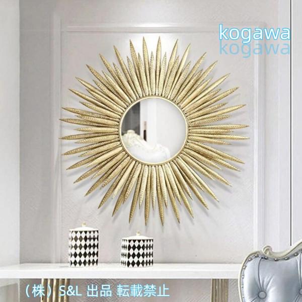 鏡 ミラー フェザーサン 羽根 太陽 70cm 高級 ホテル ゴールドフレーム おしゃれ 壁掛けミラー株式会社S&L 壁掛け おしゃれ デザインミラー シンプル オシャレ