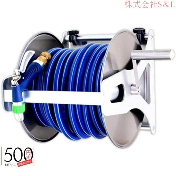ホース リール 高圧ホース 散水ホース 10m 15m 20m 25m 30m 35m 40m ステンレス鋼ホースリール 多機能 洗車水ガンセット株式会社S&L水道ホース ジョイント付き