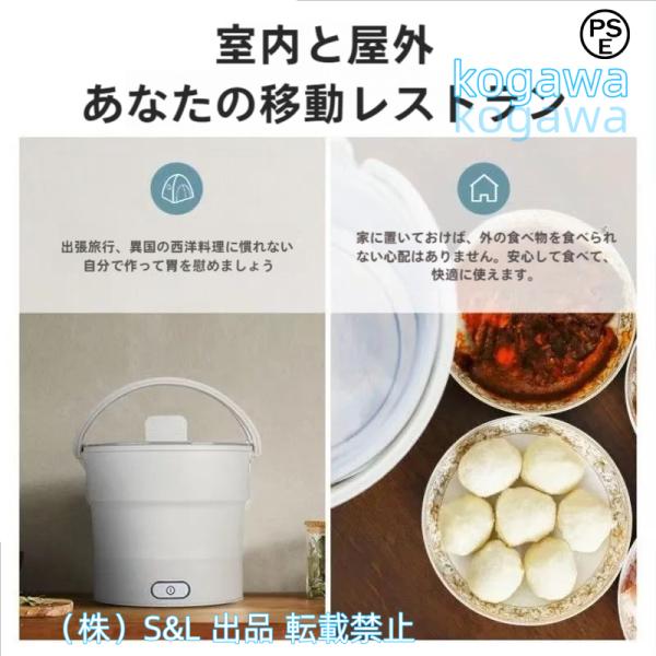 電気鍋電気ケトル110-240v海外旅行便携式ひとり鍋料理自炊鍋折りたたみ可能ひとり暮らし万能鍋調理クッキングヒーターS&Lキャンプ旅館宿泊民泊