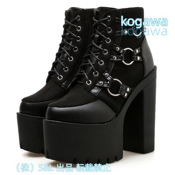 15cm 厚底 ショートブーツ ブーティ 太ヒール ベルト飾り レースアップ 編み上げブーツ カジュアル コスプレ イベント S&L仮装 パーティー ハイヒール 厚底靴
