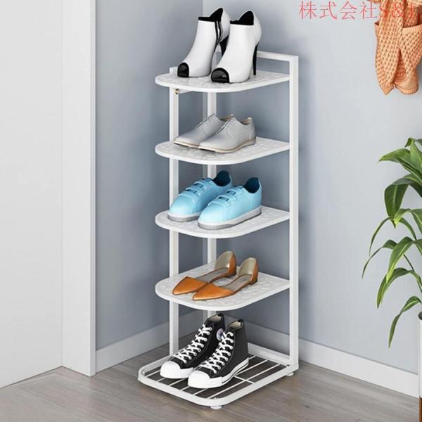 白い コーナー 靴ラック 収納棚 滑り止めフットパッド付き、 玄関 スペースセーバー 靴スタンド棚 クローゼットの出入り口用S&L 組み立てが簡単 (Size : 5 Tier