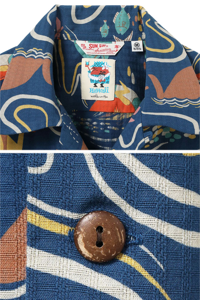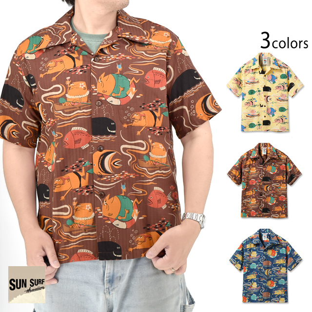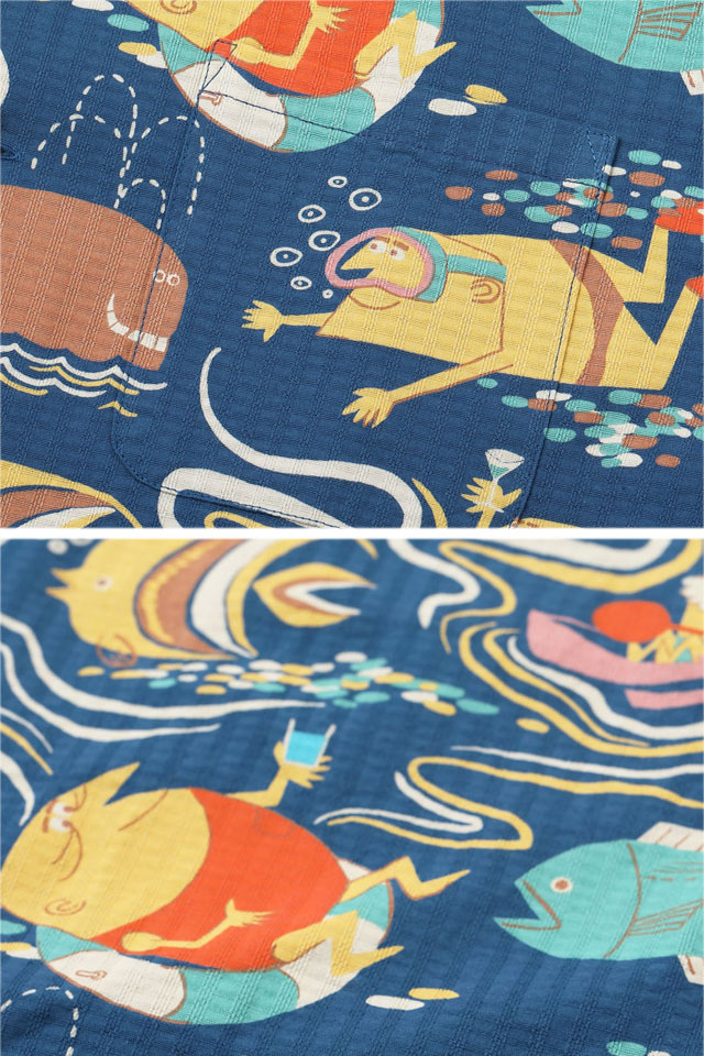 ドビーコットンアロハシャツ「OCEAN ACTIVITIES」by 柳原良平 with MOOKIE SUN SURF SS39538 サンサーフ