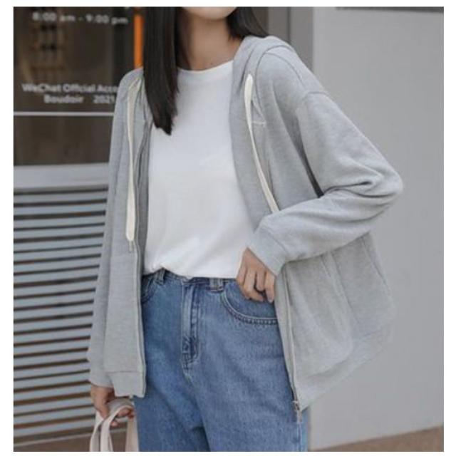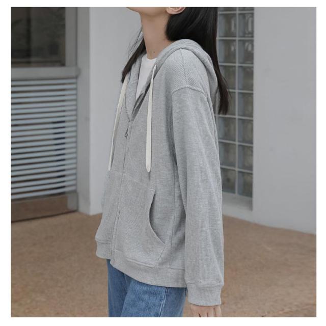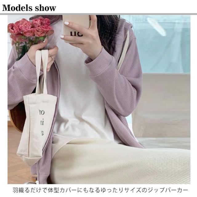 | 羽織るだけで体型カバーにもなるゆったりサイズのジップパーカー 通気性に優れていて、季節の代わり目のトップスとしても大活躍。 薄手のスウェット生地で、肌触りも柔らかく軽い着心地が楽しめる1枚。 大きめのフードがシンプルな形にアクセントを添え ゆるっとラフに着られる絶妙なバランスで、後ろ姿もお洒落な印象に。 シンプルなカットソーやワンピースと重ねるだけでこなれ感のある 重ね着スタイルが完成! | |