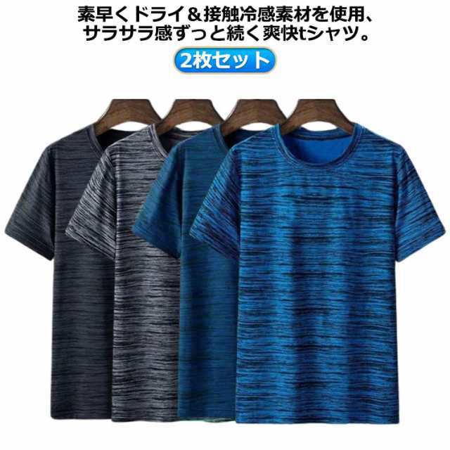 2枚セット 夏 ドライtシャツ tシャツ メンズ 夏 半袖 カットソー 冷感 速乾Tシャツ スポーツウェア 半袖tシャツ 春 速乾 ウォーキング 涼しい ラウンドネック トップス 接触冷感 クール ジョギング 大きいサイズ 薄手