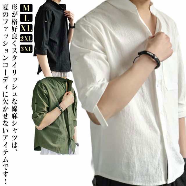 シャツ メンズ 七分袖 夏 綿麻風 無地 おしゃれ 夏服 薄手 カジュアルシャツ ワイシャツ リネンシャツ 半袖 立ち襟 スリム 春服 シンプル 涼しい 通気 軽い 快適 薄手 カジュアル ビジネス おしゃれ 無地 春夏 窮屈感ゼロ 速乾 通気吸湿