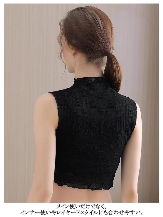 タートルネック カットソー シースルー ハイネック 付け襟 レース レイヤード風 フリルネック シースルー ノースリーブカットソー タートル インナー レイヤード レースハイネック 重ね着 つけ襟 つけえり 女性