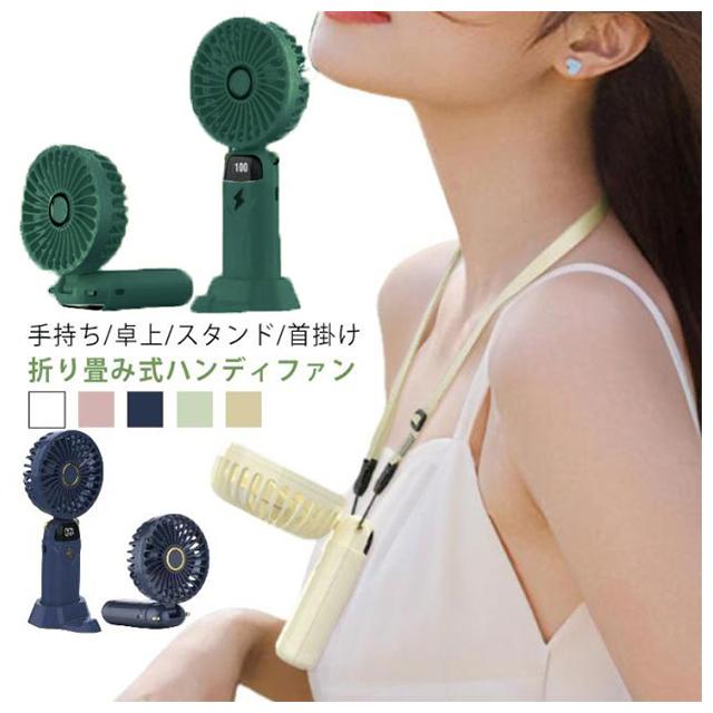 折り畳み式 ハンディファン LED残量表示 5段階風量 スマホスタンド 手持ち扇風機 ネックファン 首掛け ストラップ付き 静音 小型 扇風機 強風 風量調節 軽量 卓上 携帯扇風機 ミニ 長時間 ポータブル扇風機 Type-C 充電式扇風機 USB扇風機