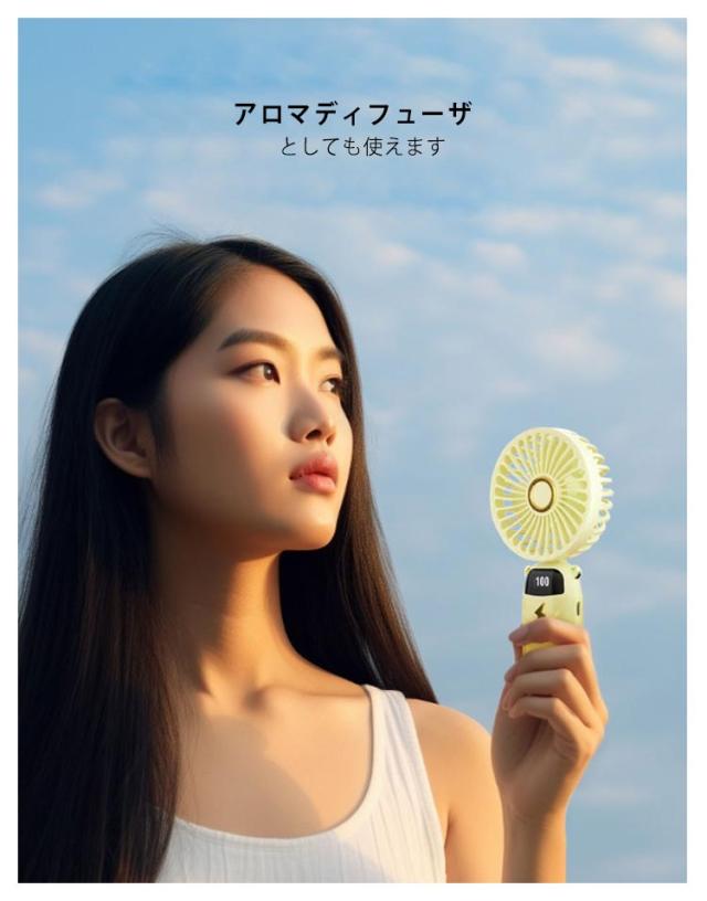 | 5段階強風! 最大10時間連続稼働 LEDD残量表示 手持ち/卓上/スタンド/首掛け 折り畳み式ハンディファン 扇風機は、周りの空気を循環させることで、汗を蒸発させて体感温度を下げることができます。さのように冷やされた空気を送り出すため、冷風です!! ・LED残量一目でわかる 残量を簡単に確認できます。 充電タイミングがわかりやすく、外出中突然電源切れの心配が少ない。 ・3枚羽根でパワフルな送風 簡単操作で5モード(自然風/冷風)調節可能! この夏の欠かせない熱中症対策として最適です! ・ヘアードライヤーと同じ回転速度 高い効率で作動して、電力の消費を最小限に抑える。 ・MAX10時間連続稼働! 大容量のバッテリー内蔵で、最大10時間涼風を持続的に満喫できます! ・USB充電式 大容量バッテリーを内蔵し、やパソコン、USB充電器に接続すると充電できる扇風機です。 ・静音性能 タービンファンノイズ騷音低減と振動低減機能搭載で、静かに送風できます。 20dB(弱モード)静音運転可能ですので、寒すぎ注意の子供さんやベビーにも適用できます。 ・アロマディフューザ としても使えます ・手持ち/卓上/スタンド/首掛け 長さ調整できる付属のストラップで、長時間のご利用も楽々。 スマホを置くと映画鑑賞なども涼しくなります。 一台4役、場所は選ばずに4Way使用できますので、様々なシーンで大活躍。 ・小型・軽量・パフフル コンパクトでスタイリッシュなデザインなので、持ち運びにも便利! | |