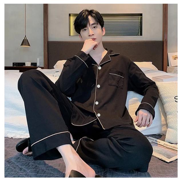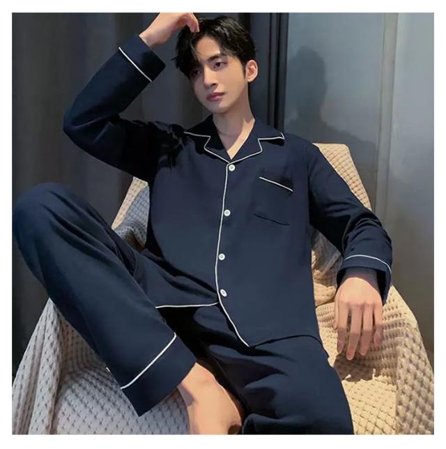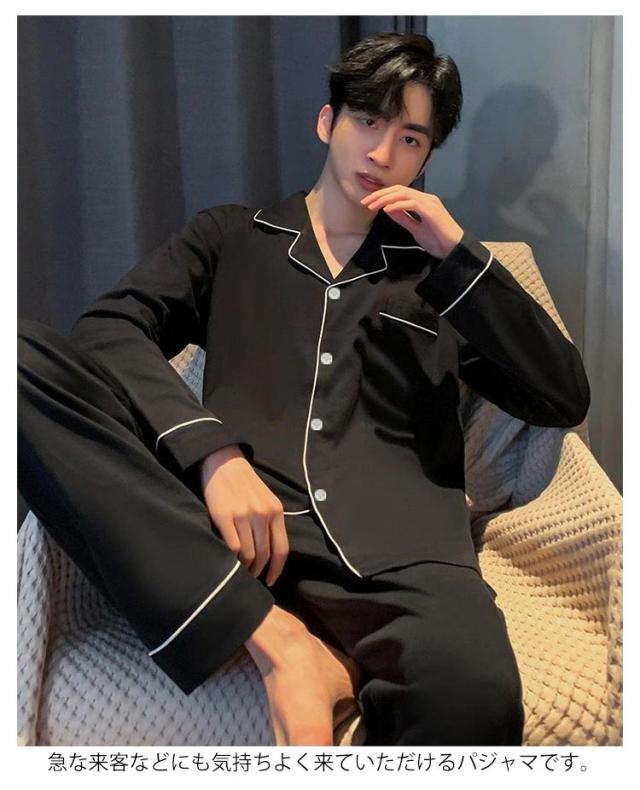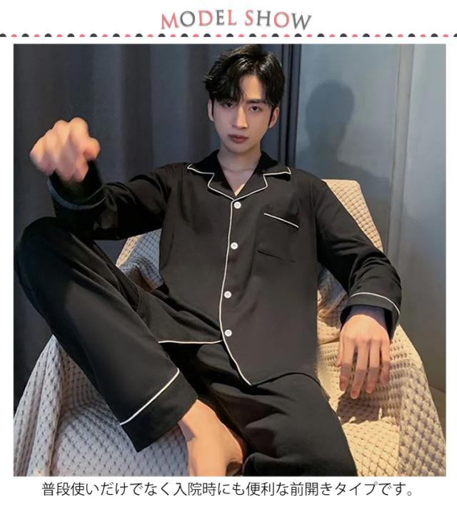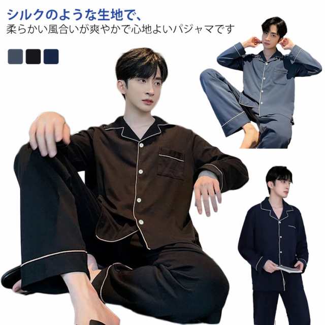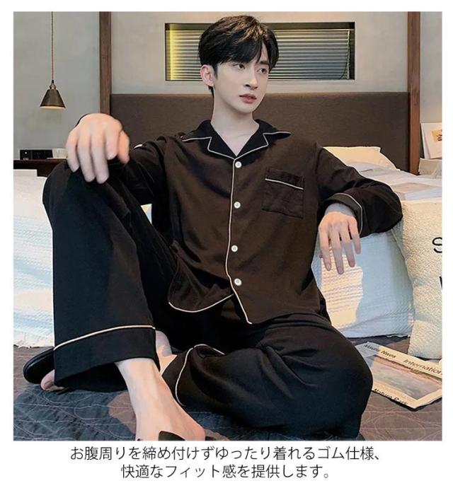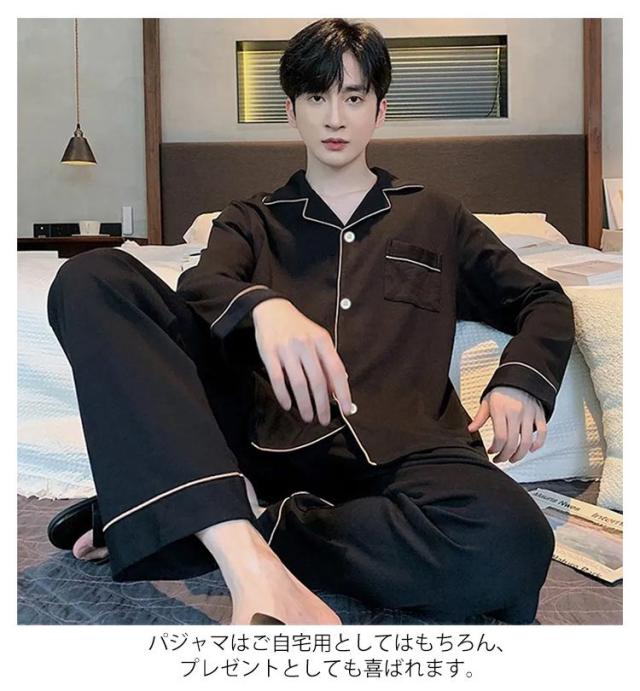 長ズボン パジャマ セット 部屋着 男性 上下 ナイトウエア ルームウェア メンズ 寝間着 前開きパジャマ 通気性 ゆったり 薄手 長袖 パジャマ シンプル カジュアル セットアップ 秋 冬 紳士 入院用 学生 息子 友人 ギフト