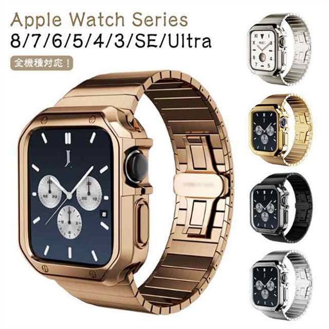 Apple Watch バンド カバー 保護カバー メンズ アップルウォッチ ベルト ケース 高級 高品質 金属アレルギー対応 サージカルステンレス 高級ケース 42/44/45mm 38/40/41mm 49mm Series 3 4 5 6 SE 7 8 Ultra 一体型 全面保護 【送料無料】