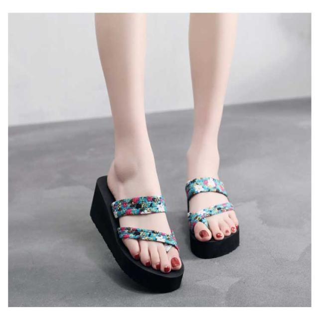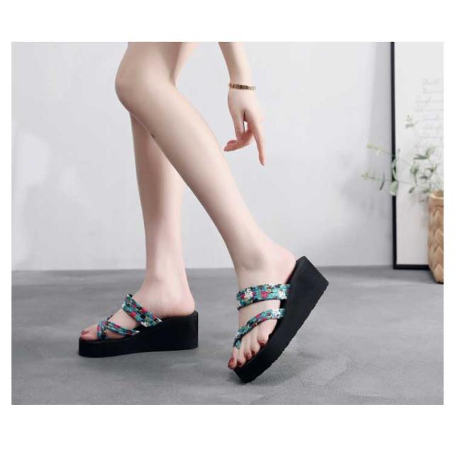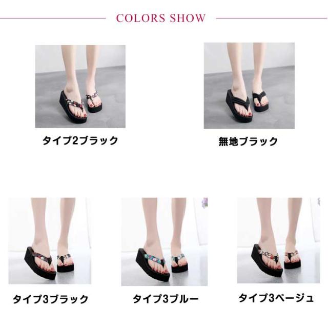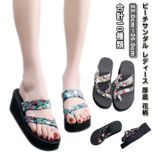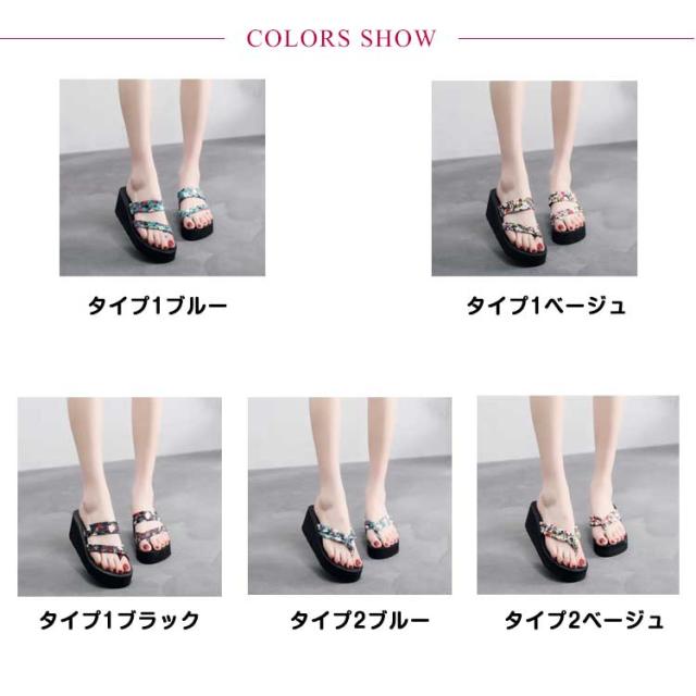 ビーチサンダル レディース 厚底 花柄 軽い トングサンダル 4タイプ 23.0cm?25.0cm 6.5cmヒール 浴衣 サンダル 痛くない レジャー用 タウン用 軽量 滑り止め 可愛い ビーサン 下駄 旅行 ウェッジソール 痛くない 美脚 ビーサン 海 温泉 夏用 お出かけ