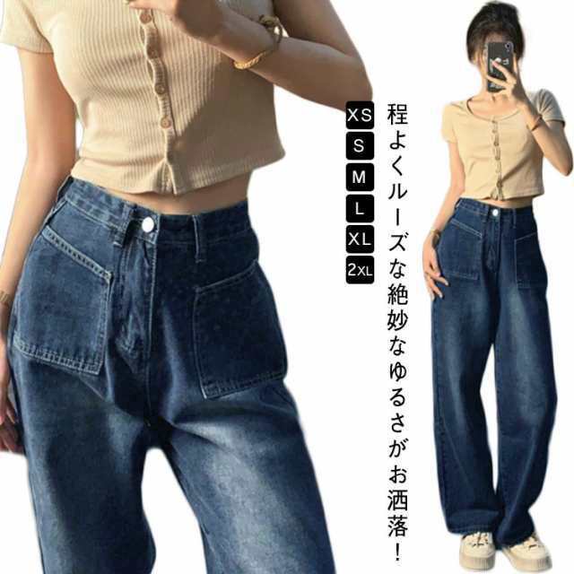 Gパン パンツ 送料無料 夏 レディース ルーズ ワイド ジーパン ワイドパンツ デニム デニムパンツ 長ズボン インディゴ 綿 ウォッシュ加工 ボトムス ロング ラフ 大きいサイズ 春 送料無料 秋