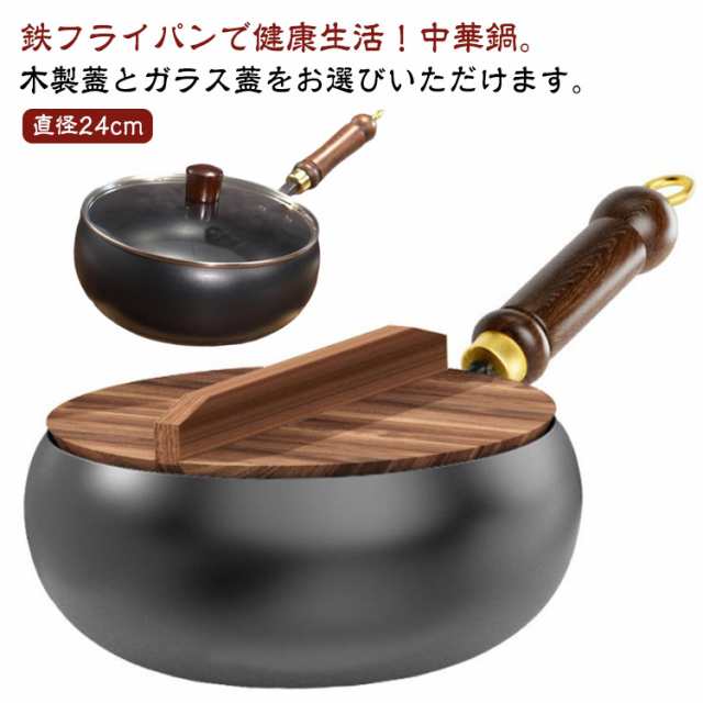 24cm 木柄 伝統鉄鍋 中華鍋 鍋 フライパン 鉄フライパン 鉄鍋 焦げ付き防止 鉄製中華鍋 焦げ付かない 軽量設計 錆びない ガス/IH対応 無塗装 高温炒め物専用 鉄手作り鉄鍋 鉄分補給可能 野菜炒め・揚げ物・煮込み万能 家庭用 洗いやすい