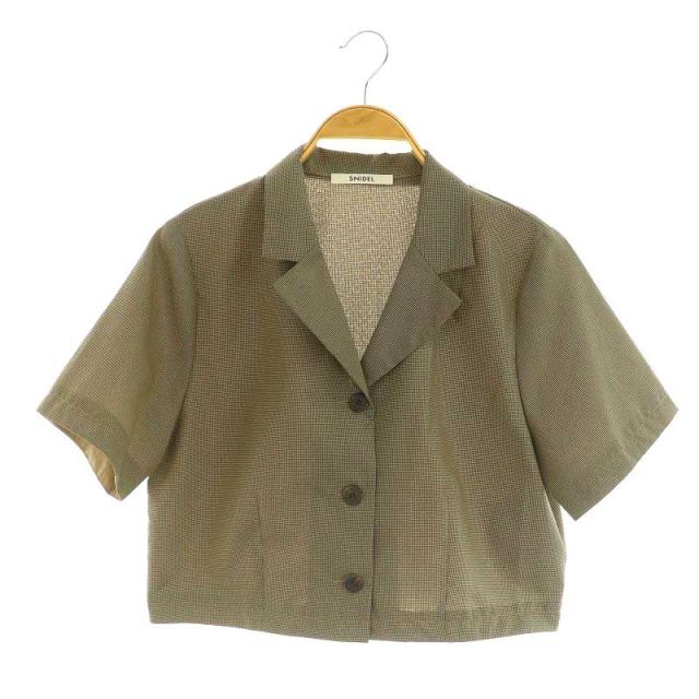 【中古】スナイデル SNIDEL オープンカラーシャツブラウス 半袖 ショート丈 チェック ONE ベージュ