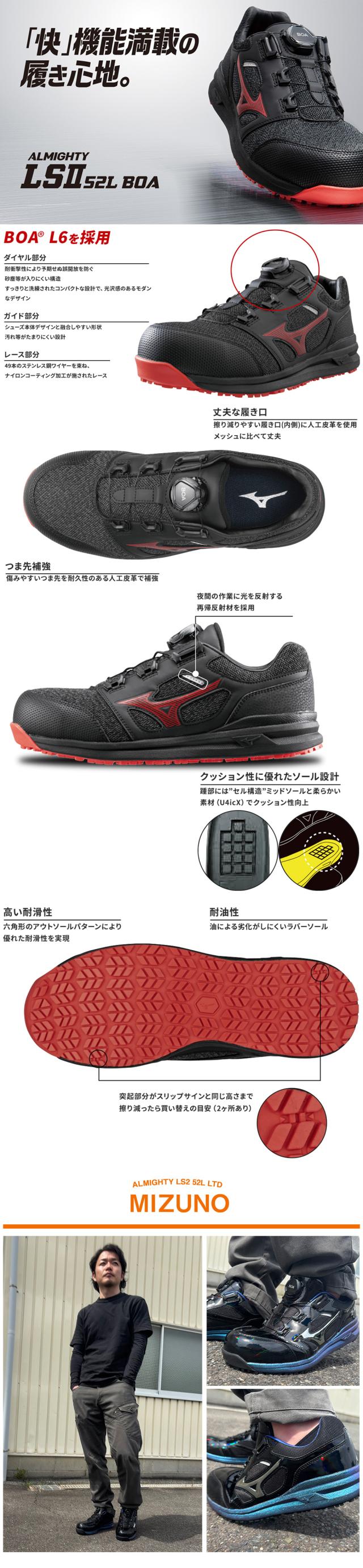 安全靴 ミズノ MIZUNO ALMIGHTY LSll 52L BOA オールマイティ Ltd F1GA251109 ダイヤル式 JSAA規格 プロテクティブスニーカー