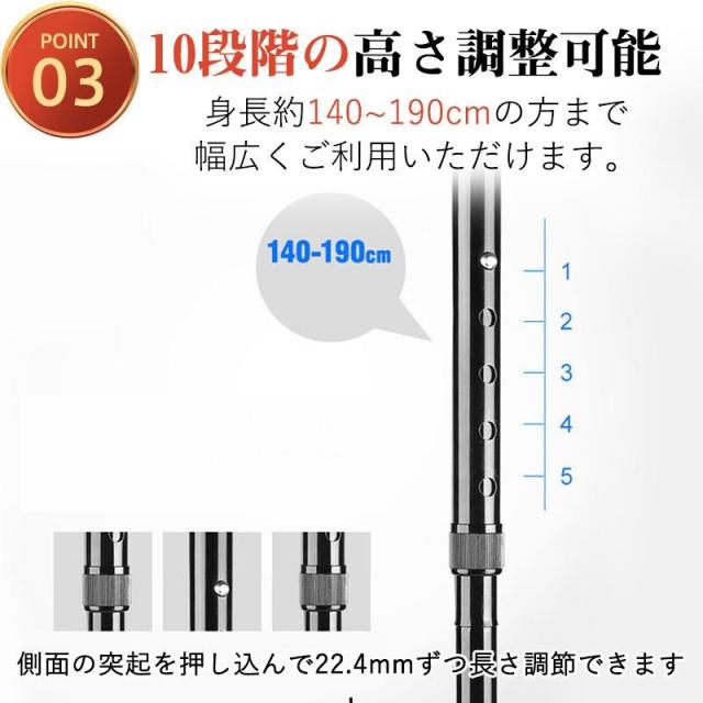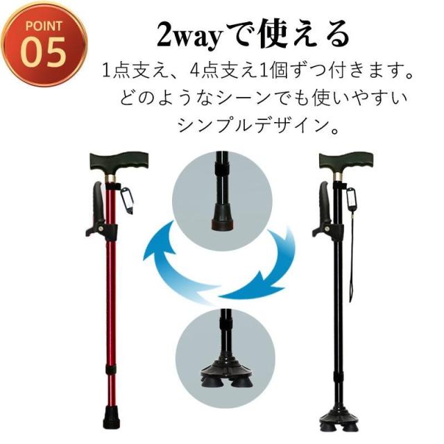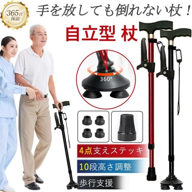 杖 自立式 介護 4点杖 ステッキ 10段階調整 滑り止め 補助ハンドル付き 伸縮式 軽量 コンパクト 歩行支援 歩行補助 高齢者 プレゼント 敬老の日