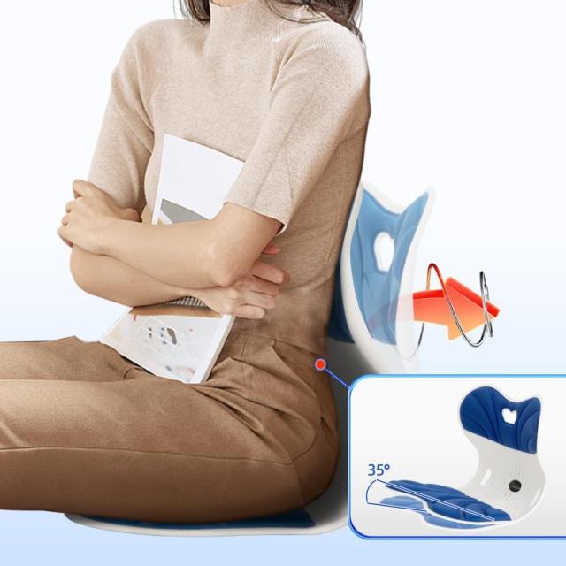 【テコ式骨盤サポート】姿勢矯正椅子は人間工学とテコ原理に基づいて設計され、緩やかにカーブした底面が着座と同時に傾き、自身の体重によって骨盤を押し上げます。背もたれが腰や背中を支えてくれ、座るだけで理想の姿勢へ導いてくれ、猫背と反り腰を予防します。