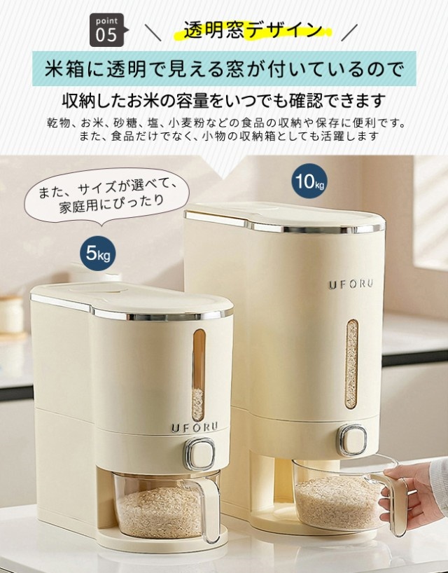 - 密閉性が抜群で、米を長期間新鮮に保つことができます。蓋を閉めると隙間がほとんどなく、虫や湿気が入りにくいので、安心して米を保管できます。デザインもシンプルでスタイリッシュで、キッチンに置いても目障りに...