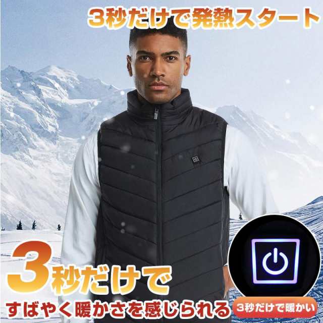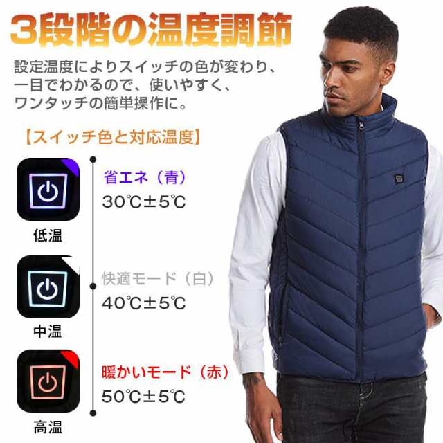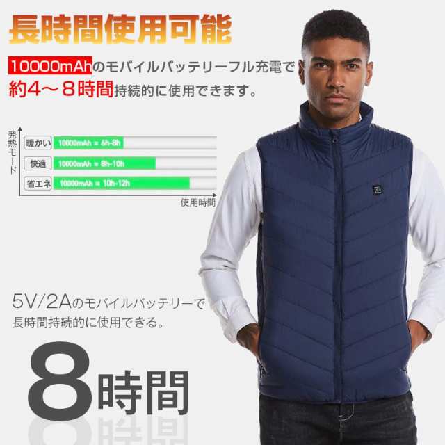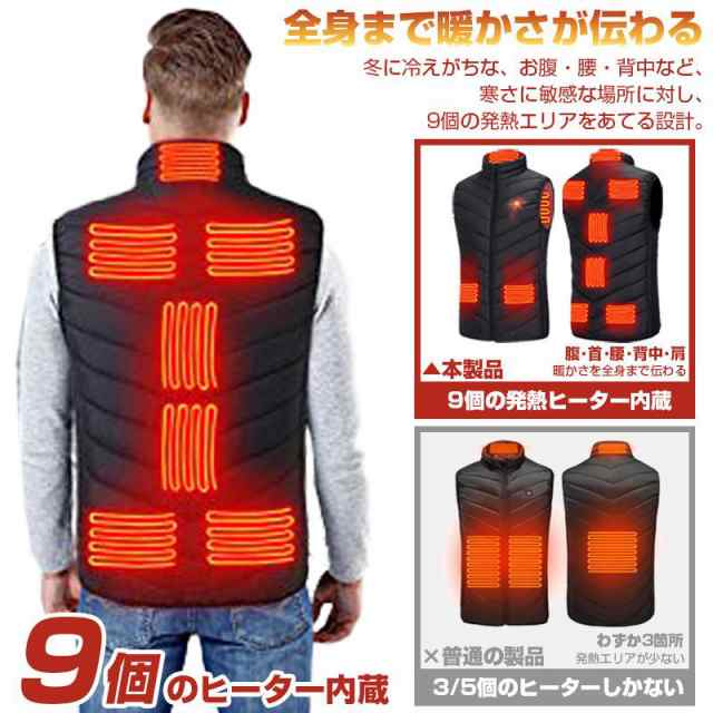 【バッテリー付き】 電熱ベスト 9エリア発熱 モバイルバッテリー ベスト USB 3段階調温 アウトドア 水洗い メンズ レディース 送料無料