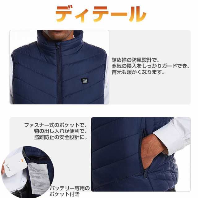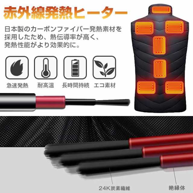 ポイント:9個ヒーター付き、前後独立制御、30-50℃、3段階温度調節、USB充電式、女性用、薄い軽い、日本製カーボン繊維、男性用、大きいサイズ