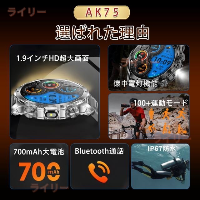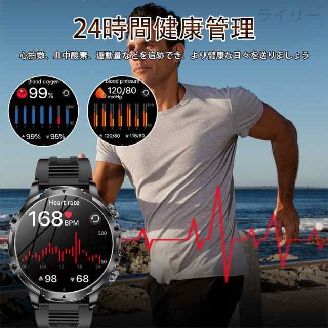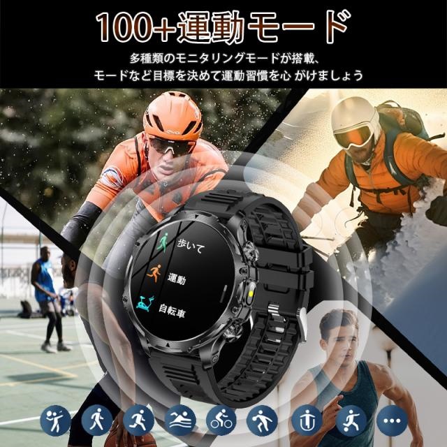 【2000オフクーポン配布中】スマートウォッチ メンズ 2025 軍用規格 iPhone アンドロイド対応 丸型 1.9インチ超大画面 smart watch 血中酸素測定 歩数計 活動量計 通話機能付き 100種類運動モード 腕の懐中電灯 耐衝撃 IP67防塵防水 【敬老の日 人気ギフト】3年保証