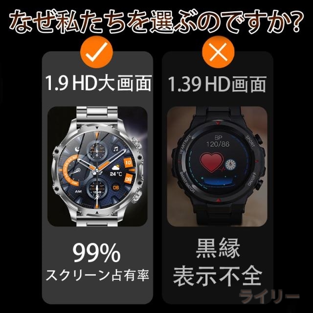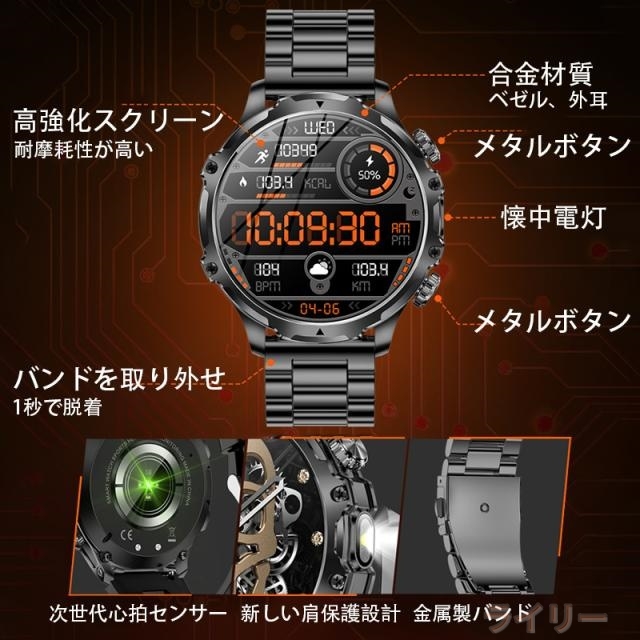 【卓越な品質と洗練されたデザイン】 このスマートウォッチ 大画面は、CNC切削技術による鮮やかな質感と、輝きと奥行きを際立たせる特徴的な時計ベゼルのデザイン、繊細なラインが魅力です。更に、軍用様のボディには傷がつきにくく1.9インチHDのAMOLEDディスプレイ