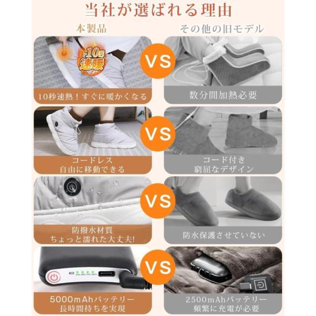 電気スリッパ フットウォーマー 電気 電熱スリッパ コードレス 足温器 歩ける スリッパ 電熱ブーツ おしゃれ 4000/5000mAh電池 即暖 3段階調節 電気足温器 ヒーター