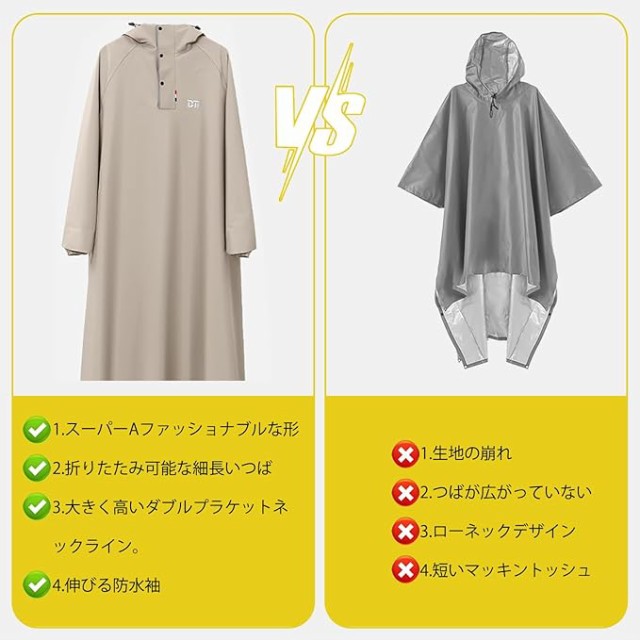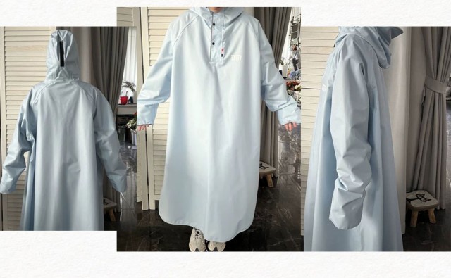 自転車、リュックに対応可能な男女兼用のレインコート。膝下までカバーするロング丈、体がしっかり覆われ、レインブーツを履けば足元まで濡れない、全身を雨から守ることができます。伝統的なレインコートと違い、これはただのレインコートだけでなく、オシャレなデザインで旅行の時はコートとしても使えます。