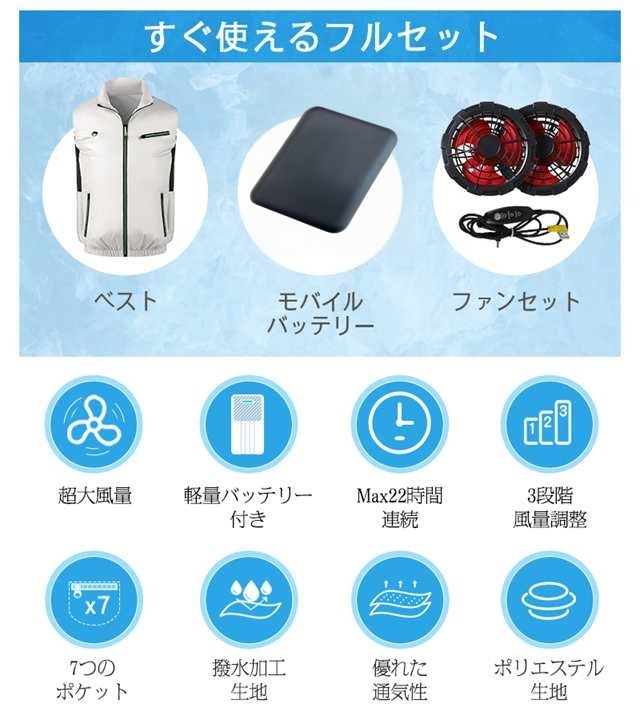 【50%オフクーポン配布中】 空調ベスト 空調ウェア 空調作業服 フルセット 32800mAhバッテリー モバイルバッテリー 空調扇風服 3段階強風 22h連続送風 9枚羽根 19Vファンベスト エアコン服 UVカット UPF 50+ 【敬老の日 人気ギフト】